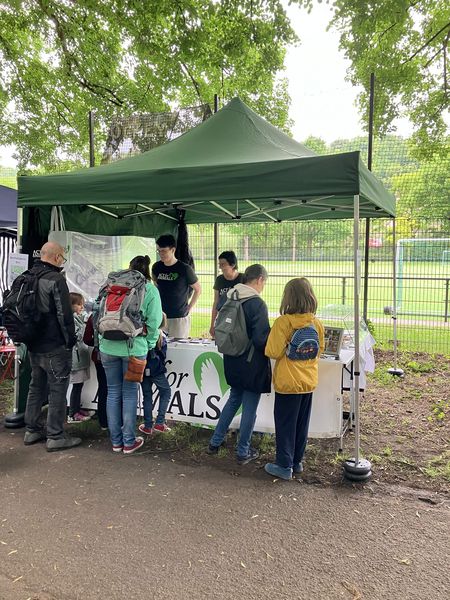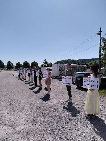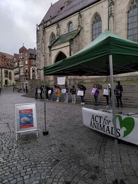 Wie in den Vorjahren führten wir im Mai eine Unterschriftenaktion gegen Affenhirnforschung durch, diesmal begleitet von einer Mahnwache. Die Aktion fand im Rahmen eines Aktionstages von „Ärzte gegen Tierversuche“ statt. Außerdem waren wir beim „Tigers Career Day“ mit einem Infostand vertreten, wo wir auch ein Interview gaben, das im Juni veröffentlicht wurde. Ende Mai hielten wir eine Mahnwache vor einem Zirkus mit Tieren in Tübingen ab, um auf das Leid der Tiere aufmerksam zu machen.